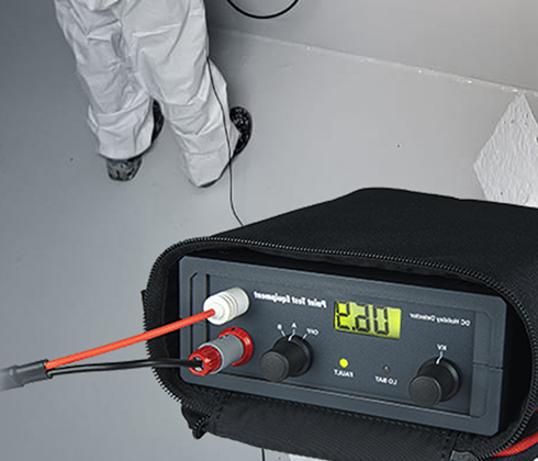 - Low voltage test (wet sponge);
